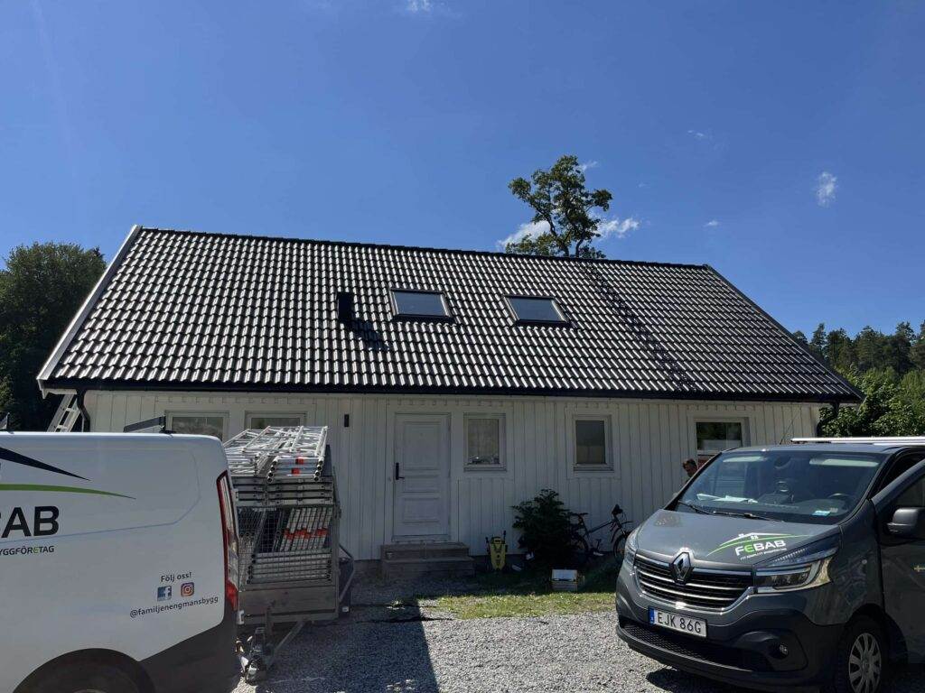 I detta projekt genomförde vi ett traditionellt takbyte på ett vinkelhus. Vi bytte ut takpannor, plåtar, vindskivor och takavvattning för att förnya takets funktion och utseende. Dessutom ersatte vi tre takfönster för att förbättra ljusinsläppet och husets energieffektivitet. Arbetet utfördes med noggrant hantverk och respekt för husets karaktär, vilket gav ett hållbart och estetiskt tilltalande resultat.